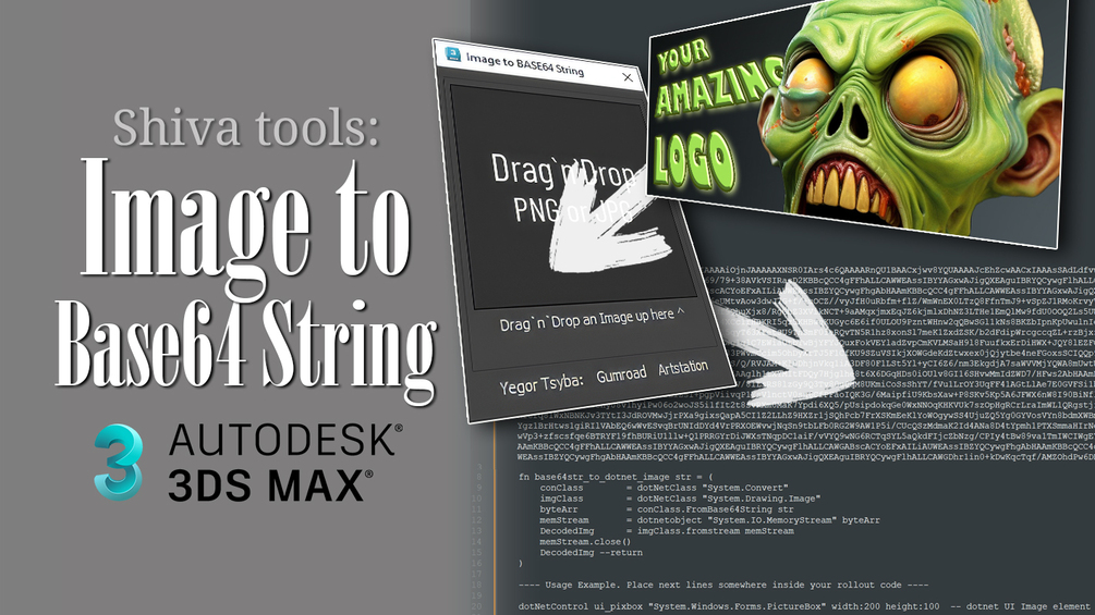 If you're a 3ds Max scripter, you've probably wondered how to avoid dragging logos and icons as separate files and embed them directly into your script. So, I made a convenient Base64 encoder for Dotnet for myself and decided to share it with everyone.